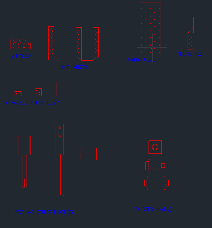 Joist Hangars - Nail Plates -Multi Grip - Purlin Cleats - AutoCAD (Metric)
